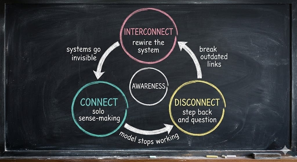 That is what awareness is for. And that is why I built this framework: Connect. Disconnect. Interconnect. It’s a learning system for leadership. It’s a path that helps you stay close to reality.